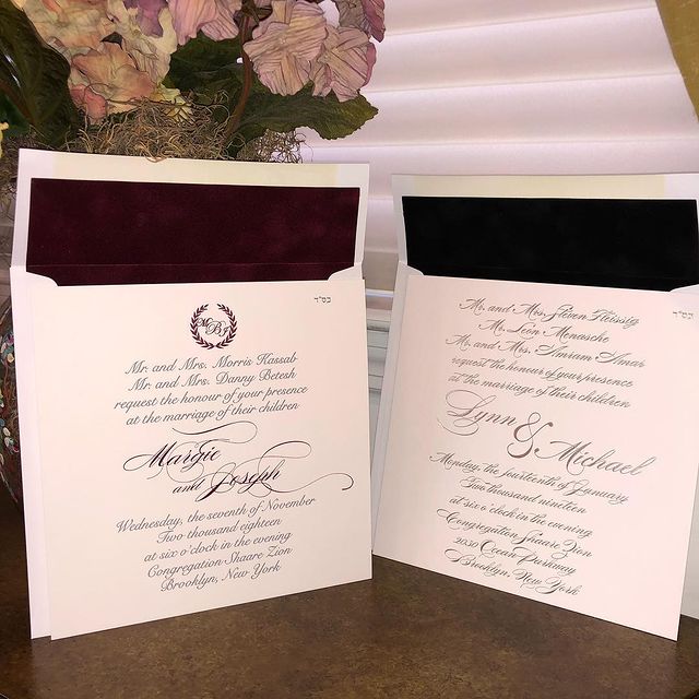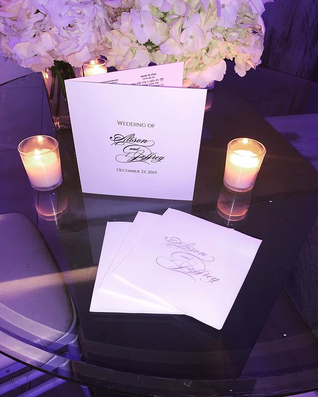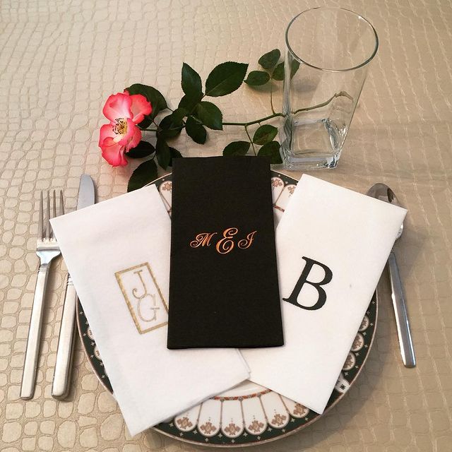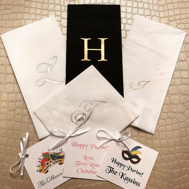 Hot Stamping Specialties -Custom Invitations, Thank U Notes, Napkins, Napkin Rings, Candy Bags, Yarmulkas, Mints etc. Printed on premises. Hot stamp printing is a unique kind of printing that includes both shiny and matte finishes. Our foils at Hot Stamping Specialties Ltd. provide the deep rich colors you need for an upscale event. A solid layer of color is laid down under heat and pressure as opposed to wet ink printing which absorbs into the material producing a washed out look. The letters are pressed into the napkin giving a below the surface impression you can actually feel. Remember, personalized napkins and accessories are usually the only visual showing of the name of the bride and groom at the affair. Whether you're a caterer, party planner or an invitation dealer, we provide outstanding quality and great customer service.