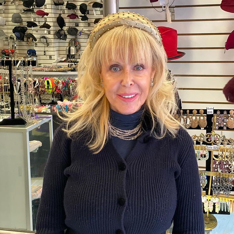 As we entered the brightly colored store shimmering with sparkles and gems, we were met by a Teacup Yorkie named Yobi, who follows his owner, Jeannie, everywhere she goes, including on her newest venture in Manhattan. Jeannie has been selling headwear on Long Island since 1987, and decided to open another boutique on the Upper West Side in 2015. She had been searching on the Upper East Side, where she has a large customer base, for years, but was not having much luck until she ventured to the other side of the park. ''I can't believe how nice people are, here!?'', she exclaimed. She was proud to tell us that she is the only American retailer to carry Philip Tracy, a milliner designer from England, who specializes in velour. Jeannie was also eager to show us her packable, collapsible hats, for which she is apparently well-known. I was particularly intrigued by a stiff hat curled into a ring that could be twisted into different shapes before worn. Jeannie guided the Manhattan Sideways team around the shop in a whirlwind of suede, leather, and sparkles, happy to model any of her designs. Everything is handmade, she assured us. Nothing comes from a factory. While drifting from one intricate piece to the next, Jeannie told me about her background. I learned that she was a teacher with a Masters degree in reading, but that she quickly realized that this was the wrong profession for her. She traveled to Argentina in the 1980s and met a hat designer with AIDS who taught her how to make hats. When he passed away, Jeannie inherited his supplies and her next career began. In addition to hats, Jeannie carries scarves and jewelry, as she explains, ''Anything connected to the hair and the head''. She demonstrated how a scarf made entirely of beads can be twisted into an infinity scarf, and then pulled out a collection of stone bracelets with magnetized cuffs. There were also pin-less brooches with hidden magnets and light-weight yoga clips that will not pull on one?s hair. When Olivia, a Sideways team member, mentioned that she was beginning to recognize a pattern in the inventory, Jeannie confirmed that the pieces in her store are not only glamorous, but easy to wear. She went on to say that many dancers, especially tango dancers, come in to shop, as comfort is very important to them. After I noticed a sewing machine behind the counter, Jeannie acknowledged that she also creates custom-ordered fascinators. When I asked who, in addition to dancers, her customers are, Jeannie told me that she caters to a lot of Orthodox Jewish women and church-goers, where there is a high demand for hats. She went on to say that there are a lot of people who come in and tell her, ''Thank you for opening this store''. I was curious, however, what occasions there were at which an average, non-religious New Yorker could wear a hat. Jeannie got a twinkle in her eye and said, ''If you buy a hat, you wear that hat''.