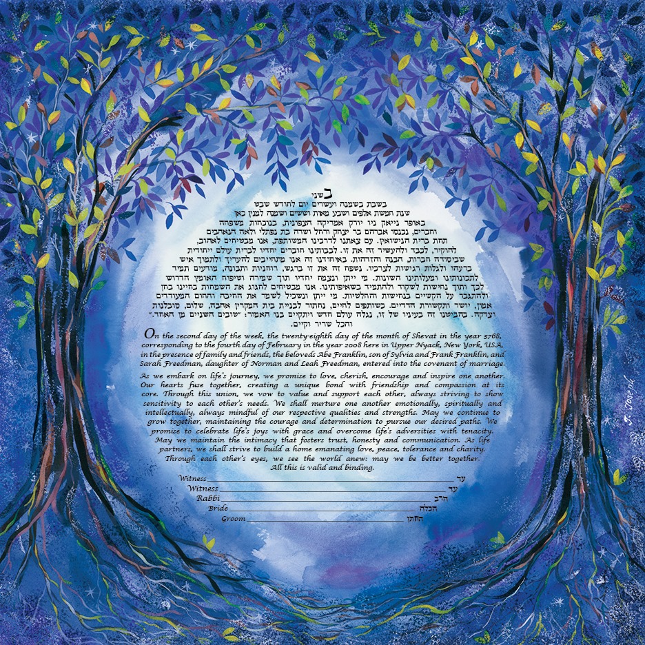 The largest and easiest to use Ketubah gallery on the planet, Ketubah.com features over 40 leading Ketubah artists and a selection of over 500 fine art limited edition Ketubahs which can only be found on Ketubah.com. Offering a wide variety of themes, texts and customization options, Ketubah.com utilizes state of the art technology that makes it easy for couples to tailor a Ketubah for their particular aesthetic, budget and religious preference. Ketubah.com was founded by Canadian Michael Shapiro, a former corporate executive who followed his dream to start a business that incorporated two of his greatest interests: Judaism and art. In the Spring of 1996, from his small Toronto apartment, Ketubah (www.ketubahketubah.com) was born, the first online Ketubah specialty store. Never before was there a single store that focused on the creation of the Jewish marriage document and clearly, there was a need for it. The business grew almost faster than he could keep up with it and soon became the number one Ketubah provider in the world. In 2006, Shapiro commissioned some of the finest Ketubah artists in the world to create works from the heart. The result is Ketubah.com's extensive catalog of exclusive Ketubahs that are produced in-house, and offer the greatest speed and flexibility of any Ketubahs, anywhere. In May 2010, Shapiro rebranded his retail business, Ketubah.com. He has assembled an accomplished and diverse team of Ketubah experts who all fluently read and write in Hebrew, and is constantly searching to add new works to the collection. Today, Ketubah.com serves as your best resource to get the perfect Ketubah for your ceremony. We'll help you discover the ideal design for your wedding, and our knowledgeable staff can help you find exactly the text you're looking for. Getting the Ketubah of your dreams shouldn't be a hassle. With our years of experience, we're here to make sure everything goes smoothly for your wedding.